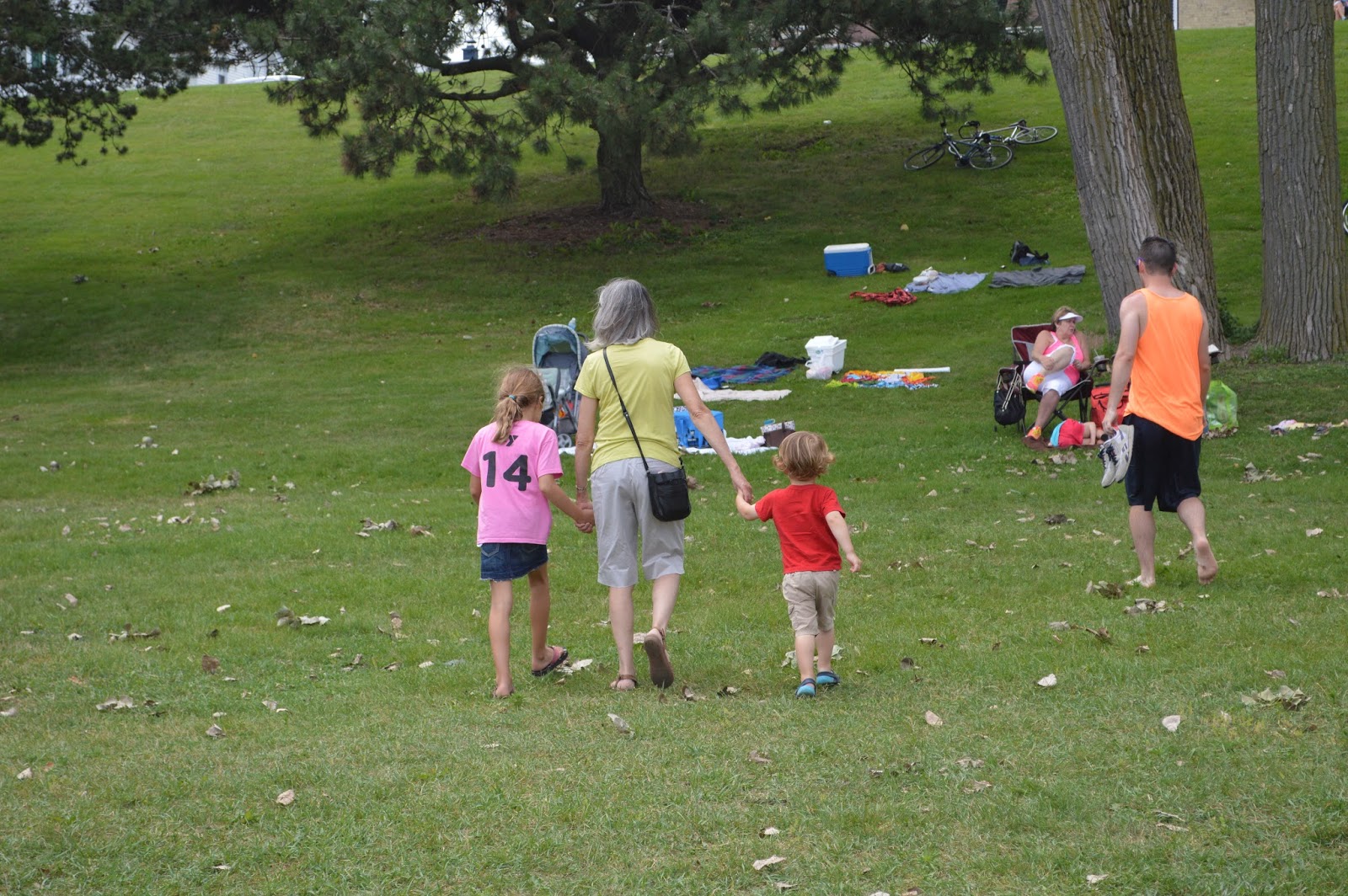 The next day, Peter spent the morning golfing with my dad and later we had to check my bike in so Hunter went down with us to the lakefront. Then we headed to a birthday party and the kids had a blast swimming with their cousins.
